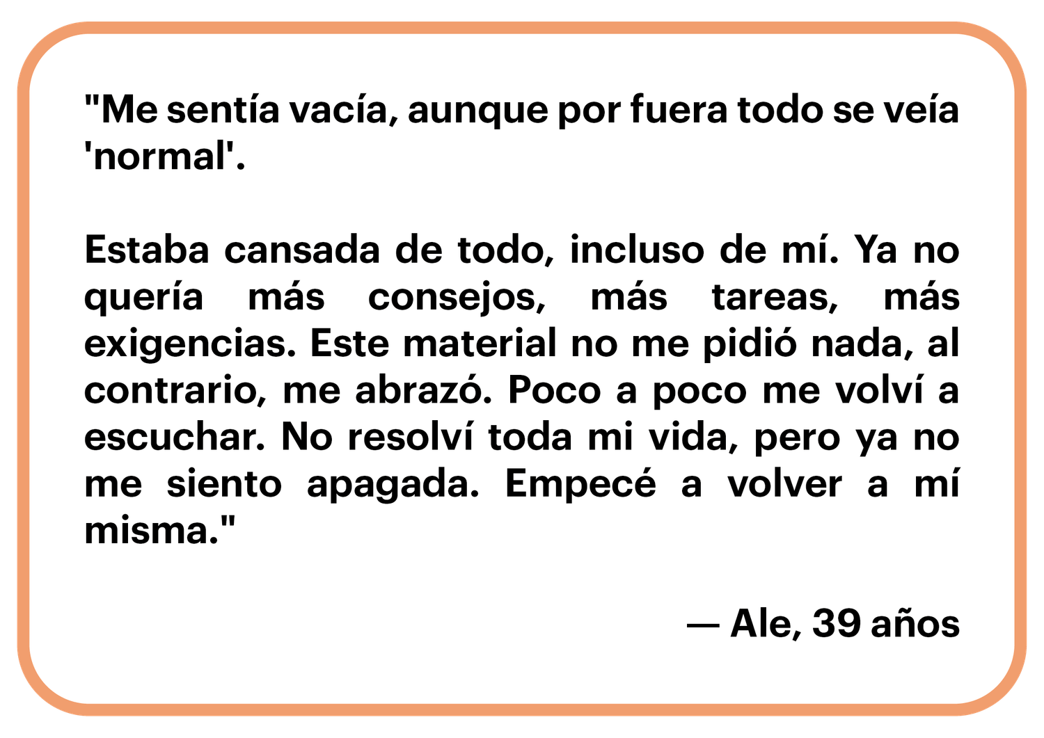Sentirás que alguien por fin pone en palabras lo que tú sientes, sin juzgarte ni exigirte. Te vas a sentir validada, acompañada y menos sola.